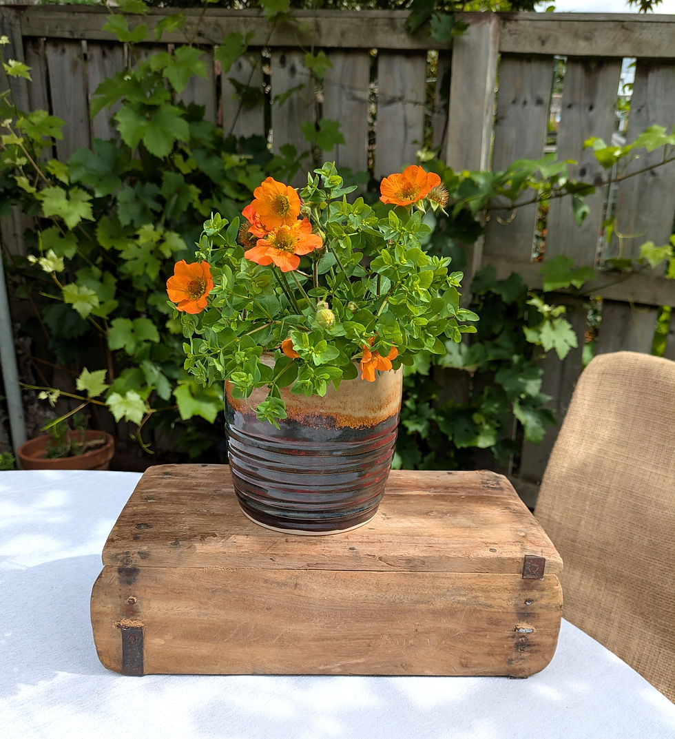 Indoor Planter in Oatmeal/tan/red/brown glaze.